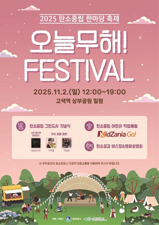 ¼ö¿øÆ¯·Ê½Ã(½ÃÀå ÀÌÀçÁØ)´Â ¿À´Â 11¿ù 2ÀÏ Á¤¿ÀºÎÅÍ ¿ÀÈÄ 7½Ã±îÁö °í»ö¿ª »óºÎ °ø¿ø ÀÏ¿ø¿¡¼ Á¦1ȸ ź¼ÒÁ߸³ ÇѸ¶´ç ÃàÁ¦ ‘¿À´Ã¹«ÇØ! Æä½ºÆ¼¹ú’À» ¿¬´Ù.