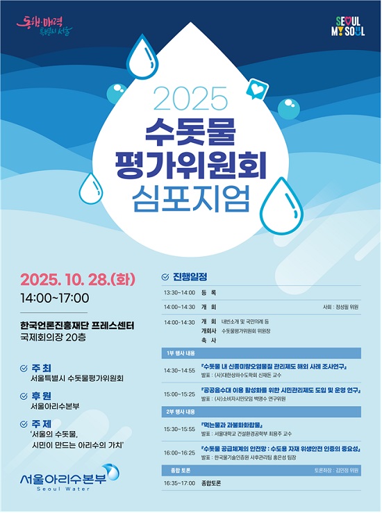 ½ÉÆ÷Áö¾öÀº 10¿ù 28ÀÏ ¿ÀÈÄ 2½Ã Çѱ¹¾ð·ÐÁøÈïÀç´Ü ÇÁ·¹½º¼¾ÅÍ ±¹Á¦È¸ÀÇÀå¿¡¼ ÁøÇàµÇ¸ç ´©±¸³ª º°µµ ¿¹¾à ¾øÀÌ ¹«·á·Î Âü¼®ÇÒ ¼ö ÀÖ´Ù. °ü·Ã ¹®ÀÇ´Â ¼¿ï½Ã ¼öµ¾¹°Æò°¡À§¿øÈ¸(¢Ï02-3146-1323)·Î °¡´ÉÇÏ´Ù.