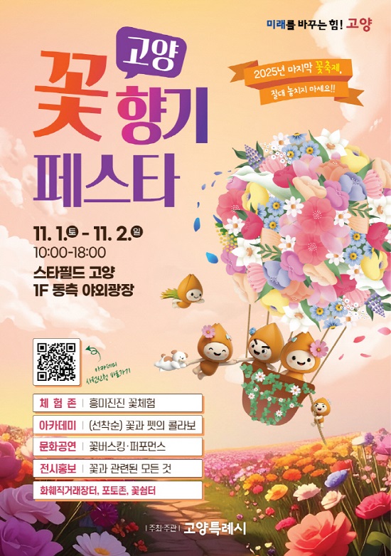 °í¾çƯ·Ê½Ã(½ÃÀå À̵¿È¯)´Â ¿À´Â 11¿ù 1ÀÏ(Åä)°ú 11¿ù 2ÀÏ(ÀÏ), ¿ÀÀü 10½ÃºÎÅÍ ¿ÀÈÄ 6½Ã±îÁö, ½ºÅ¸ÇÊµå °í¾ç 1Ãþ µ¿Ãø ¾ß¿Ü±¤Àå¿¡¼ 2025³â ¸¶Áö¸· ²ÉÃàÁ¦ÀÎ ‘°í¾ç ²ÉÇâ±â Æä½ºÅ¸’¸¦ °³ÃÖÇÑ´Ù°í ¹àÇû´Ù.