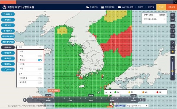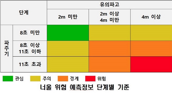 ±â»óûÀº ±×°£ µ¿ÇؾÈ, ³²ÇؾÈ, Á¦ÁÖ ÇØ¾ÈÀÇ ÁÖ¿ä ÇØ¼ö¿åÀå, ÇØ¾Èµµ·Î, ¹æÆÄÁ¦ µî 45°³ ÇØ¾È ÁöÁ¡¿¡ ´ëÇØ 3ÀÏ ÈıîÁöÀÇ ³Ê¿ï ¿¹ÃøÁ¤º¸¸¦ 4´Ü°è À§Çèµµ(°ü½É, ÁÖÀÇ, °æ°è, À§Çè)·Î Á¦°øÇØ ¿Ô´Ù.