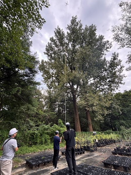 »ê¸²Ã» ±¹¸³»ê¸²°úÇпø(¿øÀå ±è¿ë°ü)Àº »ê¸²°úÇÐ ¿¬±¸ÀÇ Åä´ë°¡ µÇ¾î¿Â µµ½É ¼Ó È«¸ª½£¿¡ ÀÚ¶ó´Â ³ëºíÆ÷Ç÷¯ÀÇ ½ÇÁ¦ ³ôÀ̸¦ È®ÀÎÇϱâ À§ÇØ ¶óÀÌ´Ù(LiDAR)¿Í µå·ÐÀ» Ȱ¿ëÇØ Á¤¹Ð ¼ö°í(â§ÍÔ)¸¦ ÃøÁ¤Çß´Ù°í ¹àÇû´Ù.