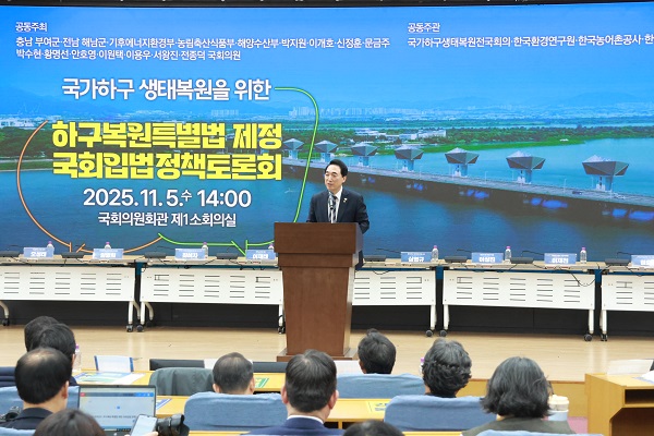 ¹Ú¼öÇö ÀÇ¿øÀº “¿ì¸®ÀÇ »Ñ¸®ÀÌÀÚ ±Ù¿øÀÎ ‘Çϱ¸’ÀÇ º¹¿øÀ» ÅëÇØ ±× ȯ°æ·»ýÅÂÀû °¡Ä¡¸¦ ³ôÀ̰í, ¿ì¸® ¾ÆÀ̵鿡°Ô ´õ ÁÁÀº ȯ°æÀ» º¸ÀüÇÏ´Â ÀÏÀÌ ¿ì¸®ÀÇ Àǹ«”¶ó¸ç, “ÇÔ²² ¸Ó¸®¸¦ ¸Â´ë°í ÁöÇý¸¦ ¸ðÀº´Ù¸é ¹Ýµå½Ã ±æÀ» ãÀ» ¼ö ÀÖ´Ù. ¿©·¯ºÐÀÇ ³íÀǸ¦ ÀÚ¼¼È÷ »õ°Üµé¾î ‘Çϱ¸º¹¿ø Ưº°¹ý’Á¦Á¤¾ÈÀ» ¸¶·ÃÇÏ´Â µî »ý¸íÀÌ ¼û ½¬´Â Çϱ¸¸¦ µÇã´Â ÀÏ¿¡ ÃÖ¼±À» ´ÙÇϰڴٔ°í ¹àÇû´Ù.