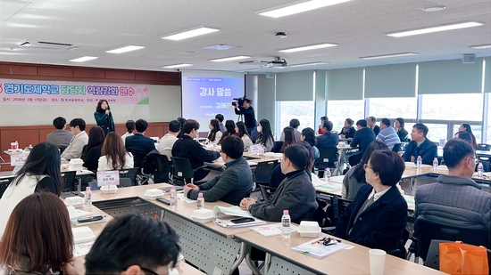 ¿¬¼ö´Â ´ã´ç ±³¿ø°ú ±³À°Ã» °ü°èÀÚ µî 100¿© ¸íÀÌ Âü¿©ÇØ ‘°æ±âµµÁ¦Çб³(GIFT ½ºÄð)’ÀÇ ºñÀü°ú ¿î¿µ Àü·«À» °øÀ¯Çϱ³ Çб³ ÇöÀåÀÇ ½ÇÇà ¿ª·®À» ³ôÀ̱â À§ÇØ ¸¶·ÃµÆ´Ù.
