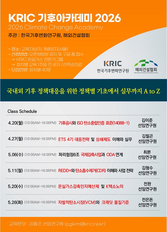 Çѱ¹±âÈĺ¯È¿¬±¸¿ø(¿øÀå ÃÖº´¼ö)Àº ±âÈķź¼Ò½ÃÀå ºÐ¾ß Àü¹® ±³À°ÇÁ·Î±×·¥ÀÎ ‘KRIC ±âÈľÆÄ«µ¥¹Ì 2026’À» ¿î¿µÇÑ´Ù°í ¹àÇû´Ù.