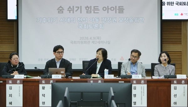 ȯ°æÀç´Ü(ÀÌ»çÀå ÃÖ¿)Àº Áö³ 9ÀÏ ±¹È¸ÀÇ¿øÈ¸°ü Á¦2¼¼¹Ì³ª½Ç¿¡¼ ±¹È¸ º¸°Çº¹ÁöÀ§¿øÈ¸ ¼Ò¼Ó ³²Àμø ±¹È¸ÀÇ¿ø(´õºÒ¾î¹ÎÁÖ´ç), ±âÈÄ¿¡³ÊÁöȯ°æ³ëµ¿À§¿øÈ¸ ¼Ò¼Ó ±èż± ±¹È¸ÀÇ¿ø(´õºÒ¾î¹ÎÁÖ´ç)°ú ‘¼û ½¬±â Èûµç ¾ÆÀ̵é: ±âÈÄÀ§±â ½Ã´ëÀÇ Ãµ½Ä ¾Æµ¿ °Ç°±Ç º¸ÀåÀ» À§ÇÑ ±¹È¸Åä·Ðȸ’¸¦ °øµ¿ °³ÃÖÇß´Ù°í ¹àÇû´Ù.